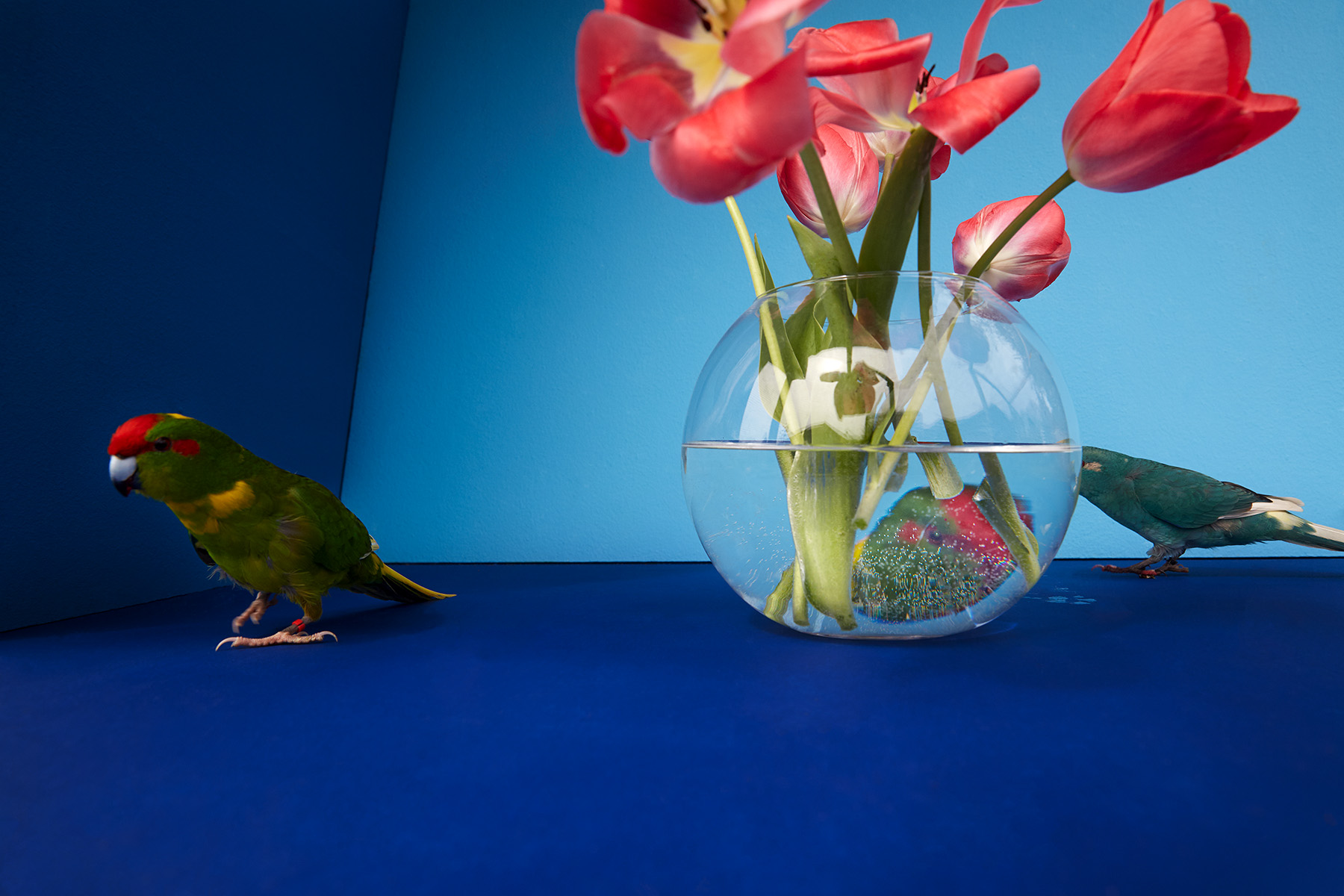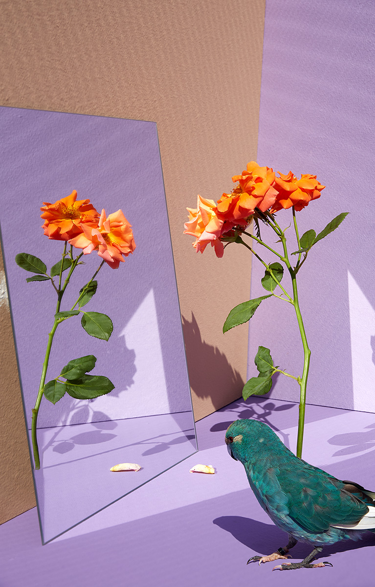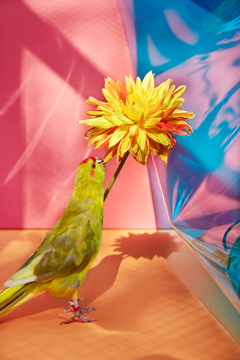 In Summertime, I try to return a fragment of that lost world. Each summer, I bring flowers from my garden into their aviary. For some, it may be their very first encounter with a flower: its smell, its color, its taste. These quiet moments become encounters between captivity and memory, between what was and what might have been.